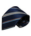 Blauwe gestreepte stropdas met blauw, bruin en wit. Past op een wit of blauw overhemd.Handgemaakt in Italië100% Italiaanse zijdePassentino Self tippingHemming lineCharmant detail: elke das heeft een unieke naam.