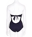 Schlichter schwarzer Badeanzug Tribal Chic v. Parah M. Gepolsterter Bügel-BH. Angereichert mit speziellen handgefertigten Applikationen v. Metall und Leder! Shop online im Italian Design!