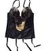 Bustier m. Suspenders AMBRA Laser Flowers. Golden base m. Black flower application. Combines nicely with matching tanga-1665! Shop online at Italian Design!
