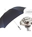 Black Pasotti men’s umbrella w. white Pinstripes. Luxury exclusive Italian umbrella, foldable, opens automatically! Shop umbrellas online at Italian Design! Read more..