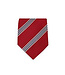 Red tie with yellow and dark blue stripes. Fabric: Italian silk from Como, Worl Capitol for silk.