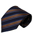 Blauwe stropdas met bruine strepen en korenblauw en champagne. Past op een wit of blauw overhemd. Handgemaakt in Italië. 100% Italiaanse zijde. Passentino Self tipping Hemming line. Charmant detail: elke das heeft een unieke naam.