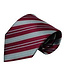 Rode stropdas met grijze en lichtblauwe strepen. Past op een wit overhemd. Handgemaakt in Italië. 100% Italiaanse zijde. Passentino Self tipping Hemming line. Charmant detail: elke das heeft een unieke naam.