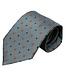 Grijze stropdas met oranje en groene details. Past op een wit overhemd. Handgemaakt in Italië. 100% Italiaanse zijde. Passentino Self tipping Hemming line. Charmant detail: elke das heeft een unieke naam.