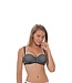 Nicole Olivier bikinitop.Design:witte nekhalter EN zwarte schouderbandjes, dwarsgestreept, ultrafijne stoffen, goede pasvorm! Shop online bij Italian Design!