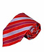 Rode das met lila, gele en bordeaux rode strepen. Materiaal: Italiaanse zijde uit Como, wereldhoofdstad voor zijde. Voering: idem. Toevoeging: lusje of 'Passentino' van dezelfde stof als de das. Extra: geweven merklabel. Afwerking: hand genaaide zadelsteek of 'Hemming Line'. Bijzonderheden: volledig handgemaakt. Productieland: Italie. Onderhoud: Chemische reiniging. Tip: Past op een wit of lichtblauw overhemd.